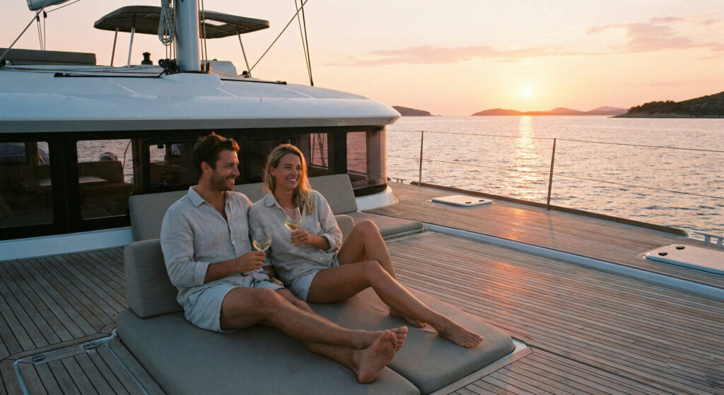 While the group practices, enjoy walks on the islands, snorkeling among the fish, or a sunset aperitif. This trip is dedicated to well-being in all its forms, and companions are welcome to relax and enjoy the sailing experience